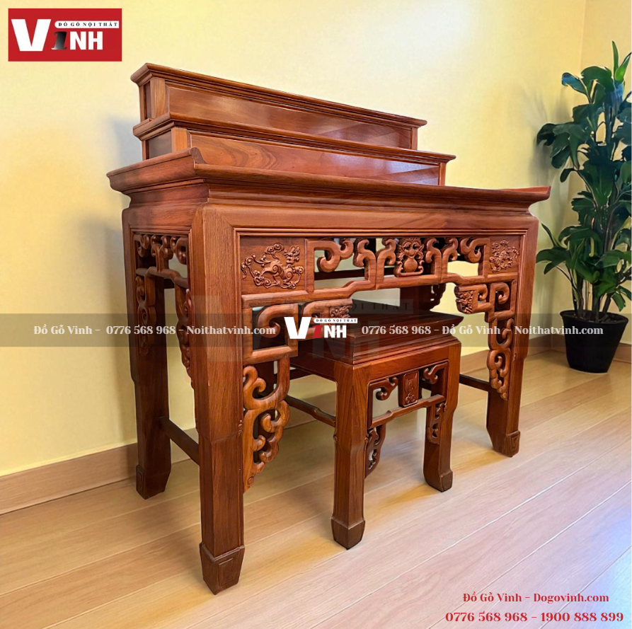 ÁN THỜ LỘC BÌNH GÕ ĐỎ 2 MÓN – NỘI THẤT BÌNH DƯƠNG