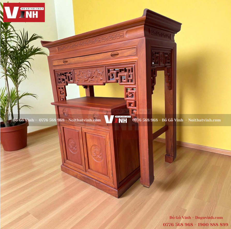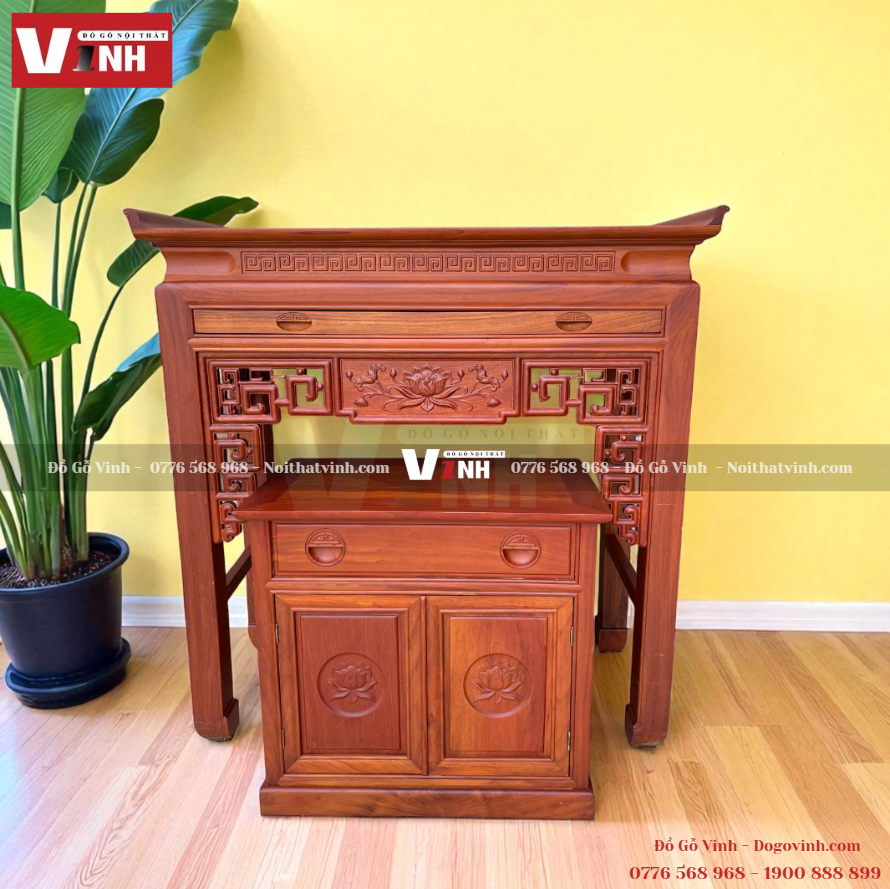 ✨ ÁN THỜ SEN VUÔNG 2 MÓN – GỖ ĐỎ CAO CẤP ✨