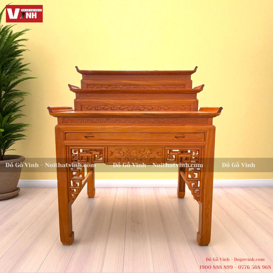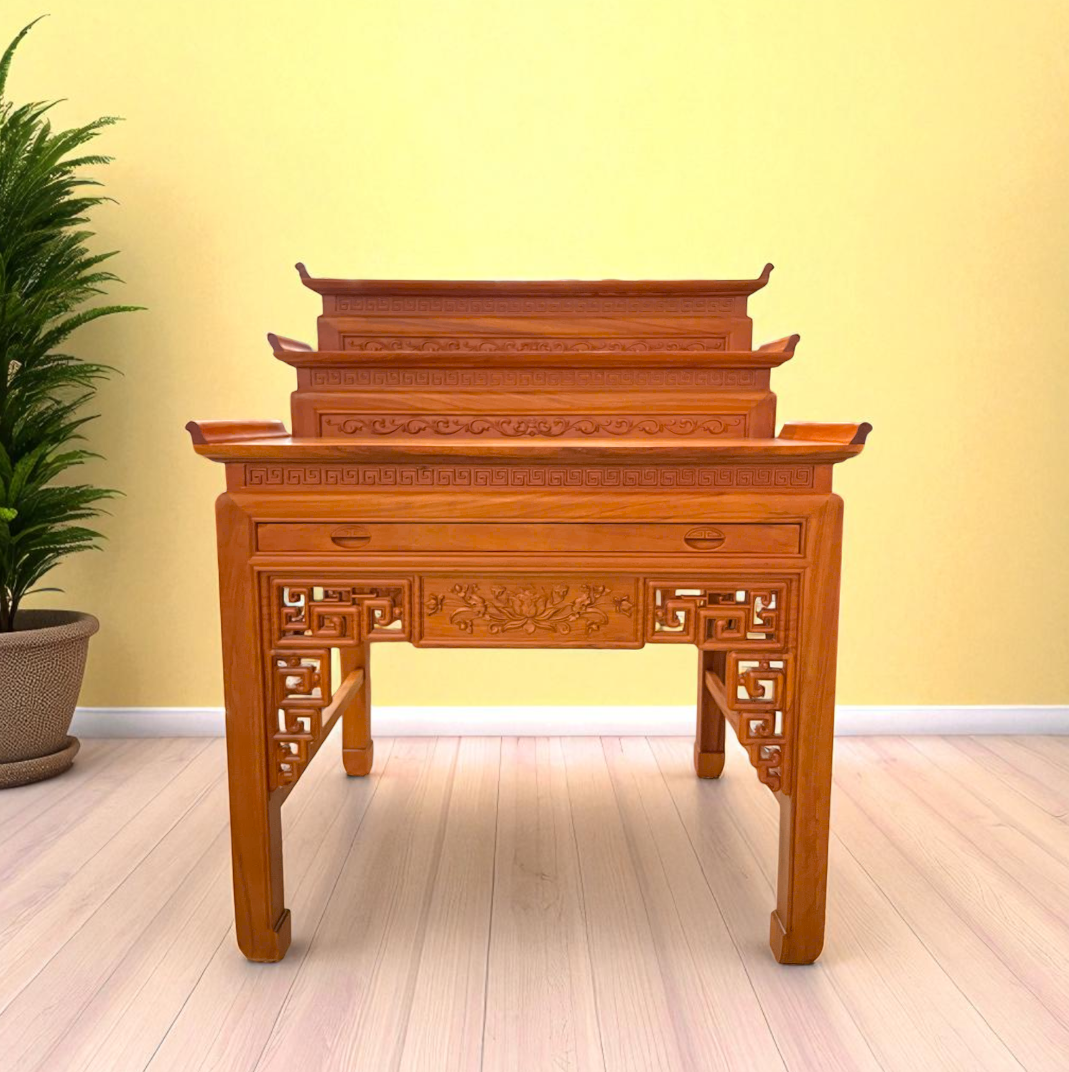 ✨ Án Thờ Sen Vuông 3 Cấp – Gỗ Đỏ Cao Cấp ✨