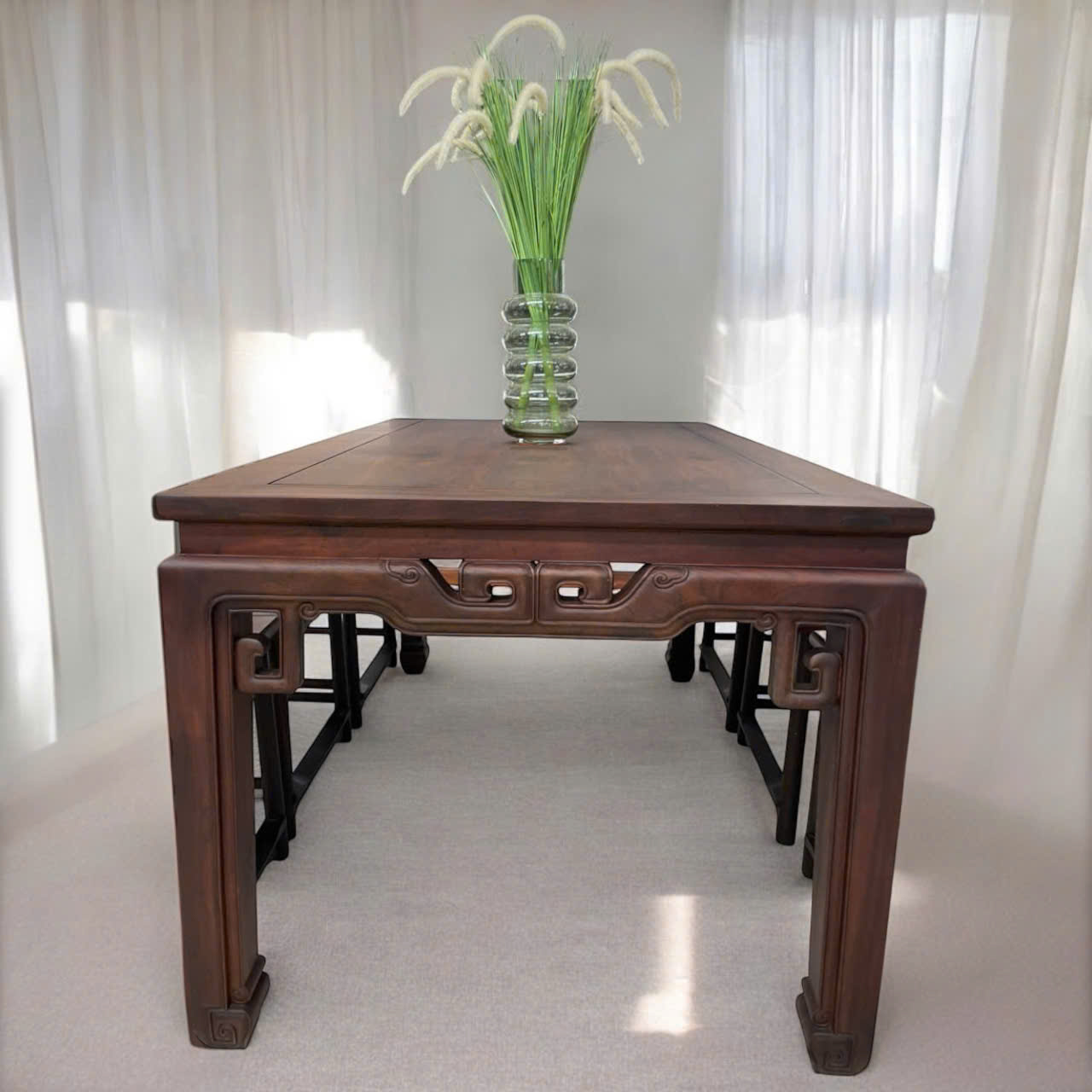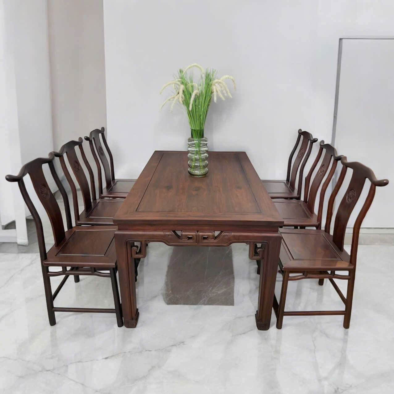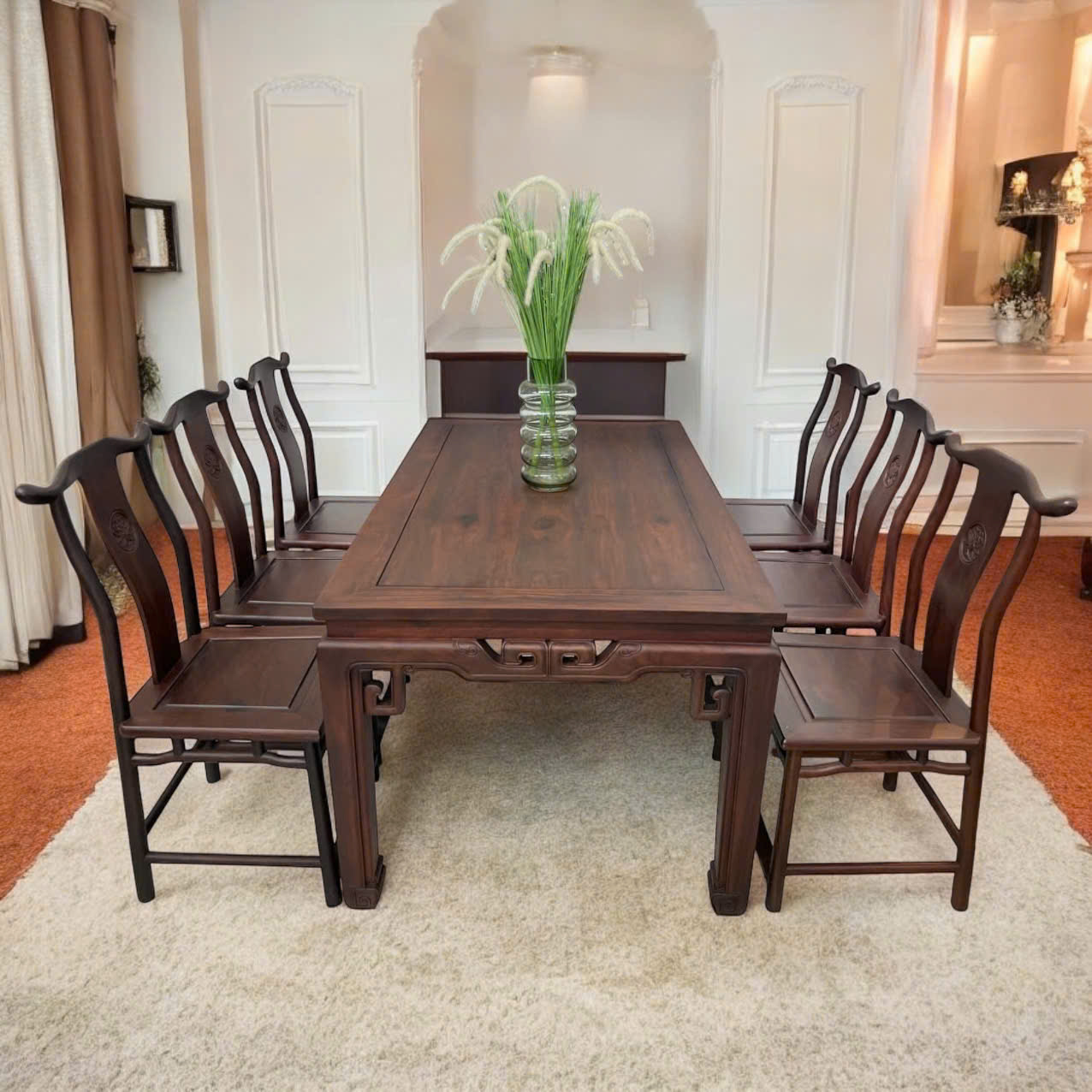 Bàn Ăn Chân Cong - 8 Ghế Sừng Trâu