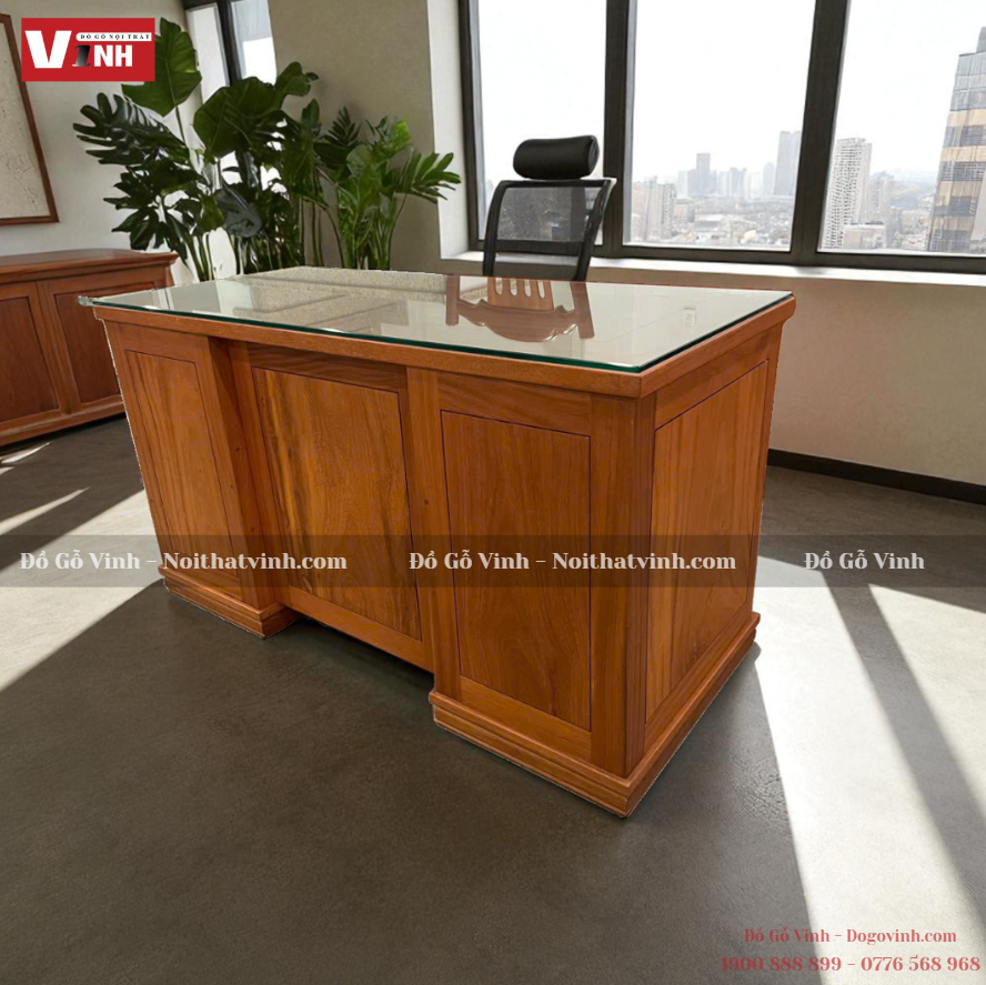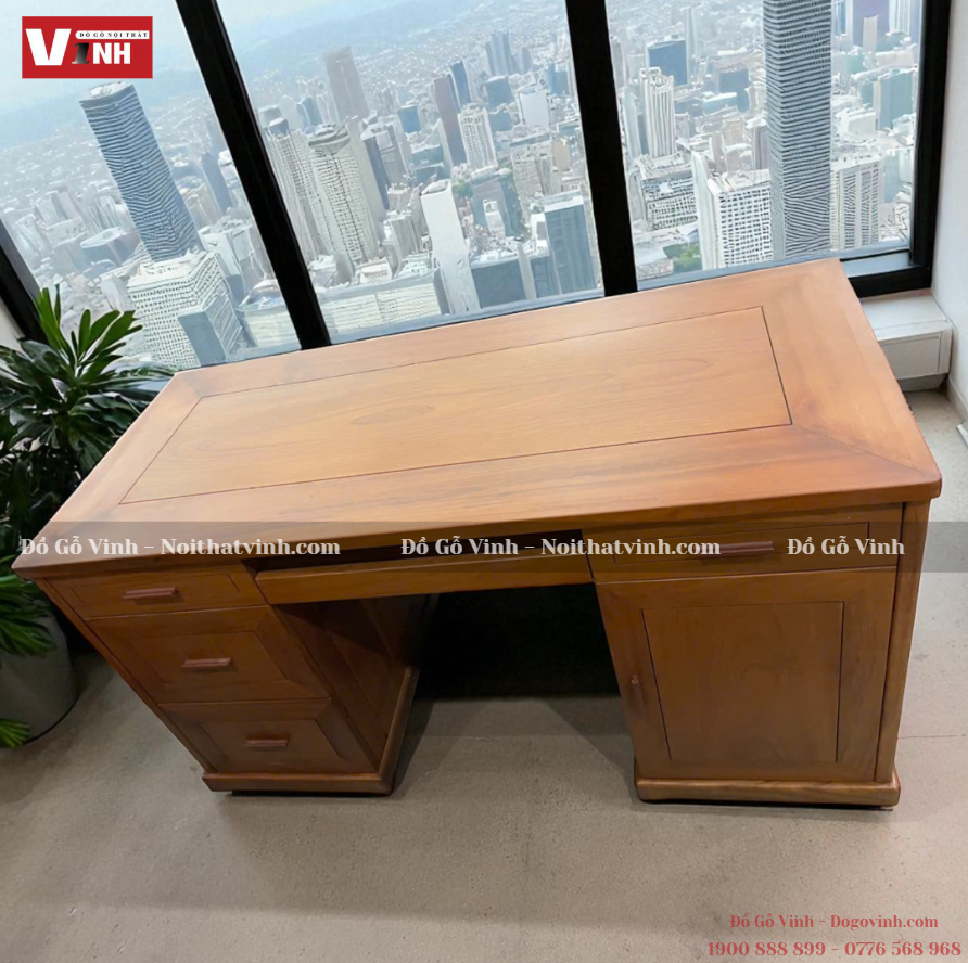 Thiết kế chuẩn mực, từng chi tiết được hoàn thiện sắc sảo nhờ bàn tay của các nghệ nhân nhiều năm kinh nghiệm trong nghề. Mặt bàn rộng rãi, kết cấu chắc chắn, phù hợp với nhiều không gian làm việc từ văn phòng đến phòng làm việc tại nhà.