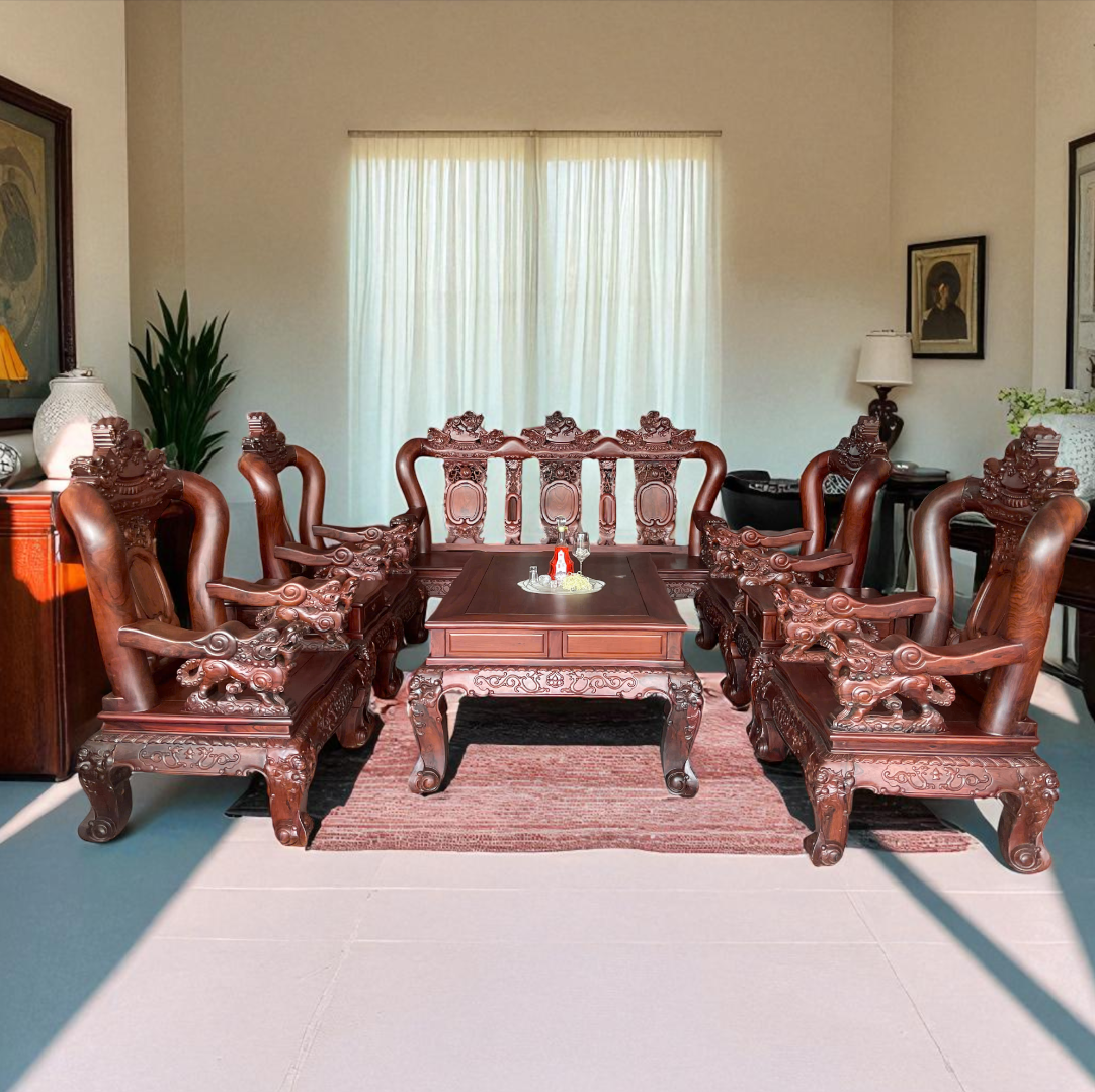 Bộ bộ ghế 12 Nghê 10 món cẩm lai được chế tác từ gỗ cẩm lai