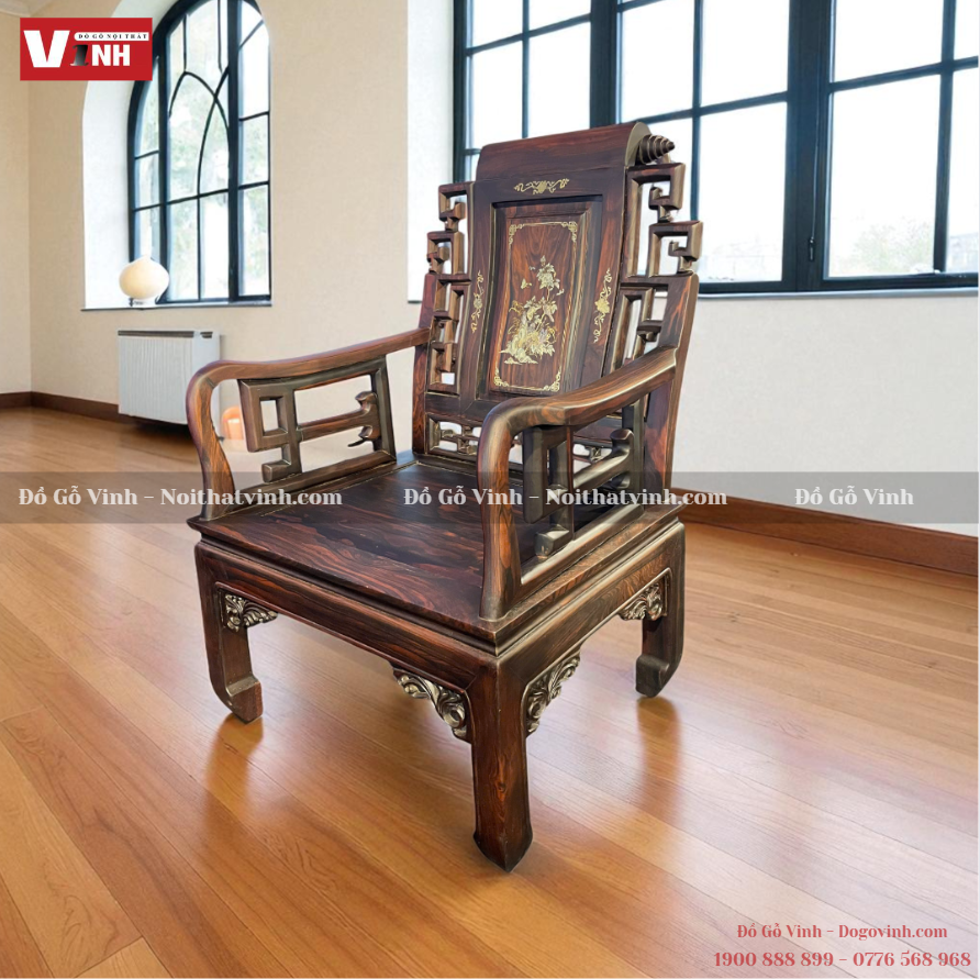 Bộ ghế Âu Á cuốn thư cẩn ốc Việt Nam 100% 10 món bằng gỗ mun sọc là tác phẩm kết hợp giữa nghệ thuật chạm khắc tinh xảo và kỹ thuật cẩn ốc truyền thống. Mỗi đường nét đều được thực hiện thủ công tỉ mỉ, mang lại giá trị thẩm mỹ và phong thủy cho không gian phòng khách. Chất liệu gỗ mun sọc quý hiếm, vân gỗ nổi bật, màu sắc tự nhiên sang trọng.