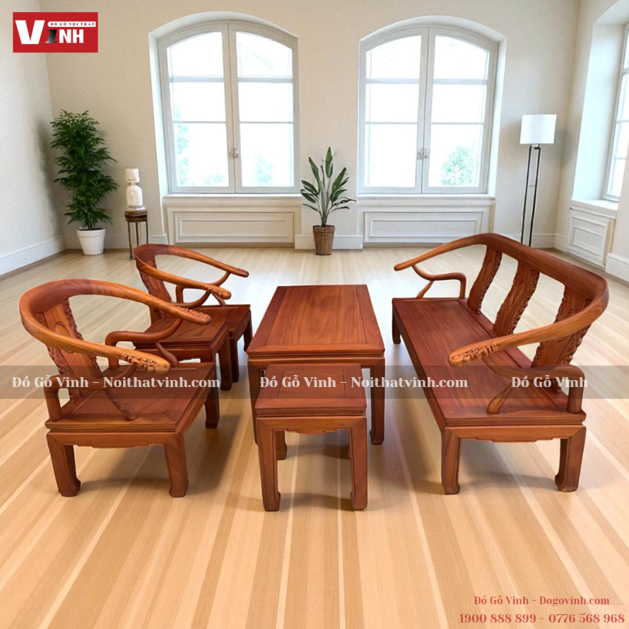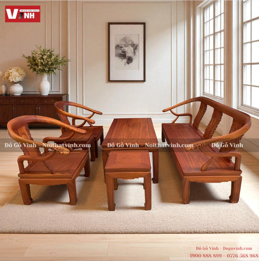 Bộ ghế Minh Thúng VIP với chất liệu gõ đỏ quý hiếm, nổi bật bởi: