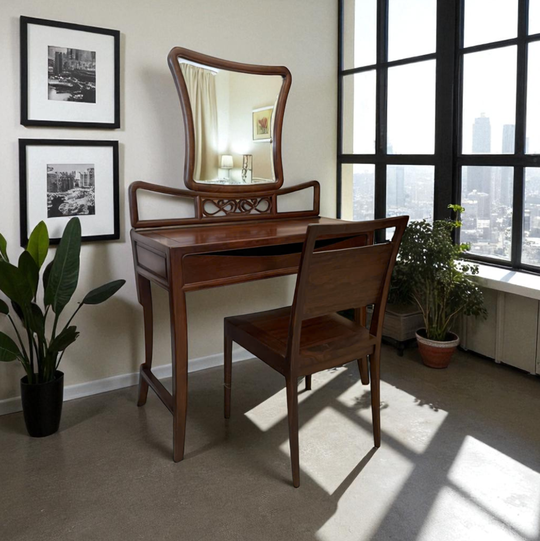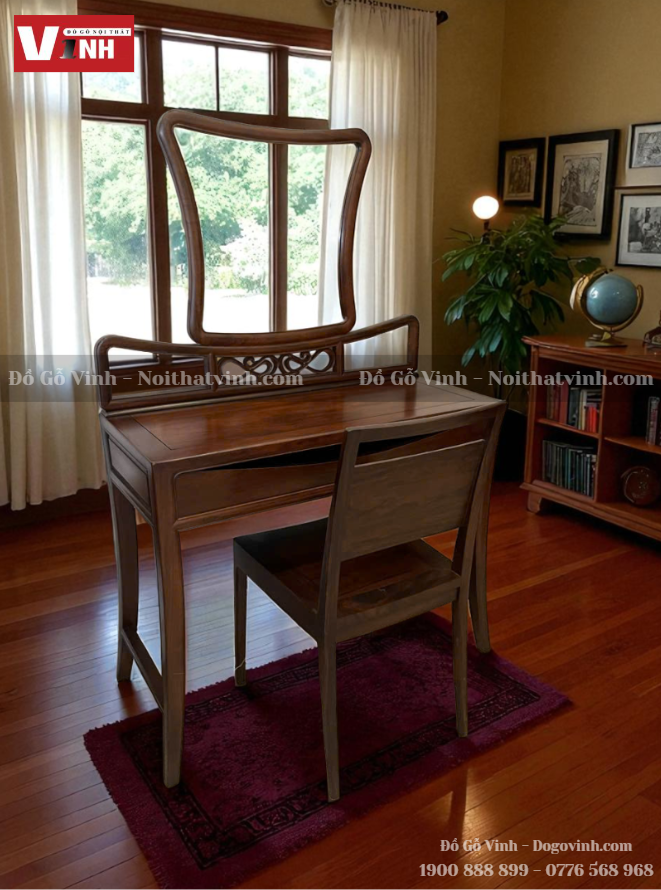 Đặc biệt, nhờ vào chất liệu gỗ Chiu Liu bền đẹp và đường nét thủ công tỉ mỉ, bộ bàn phấn mang đến cảm giác sang trọng, tinh tế và đậm chất Á Đông, rất được ưa chuộng trong xu hướng nội thất Bình Dương hiện đại.