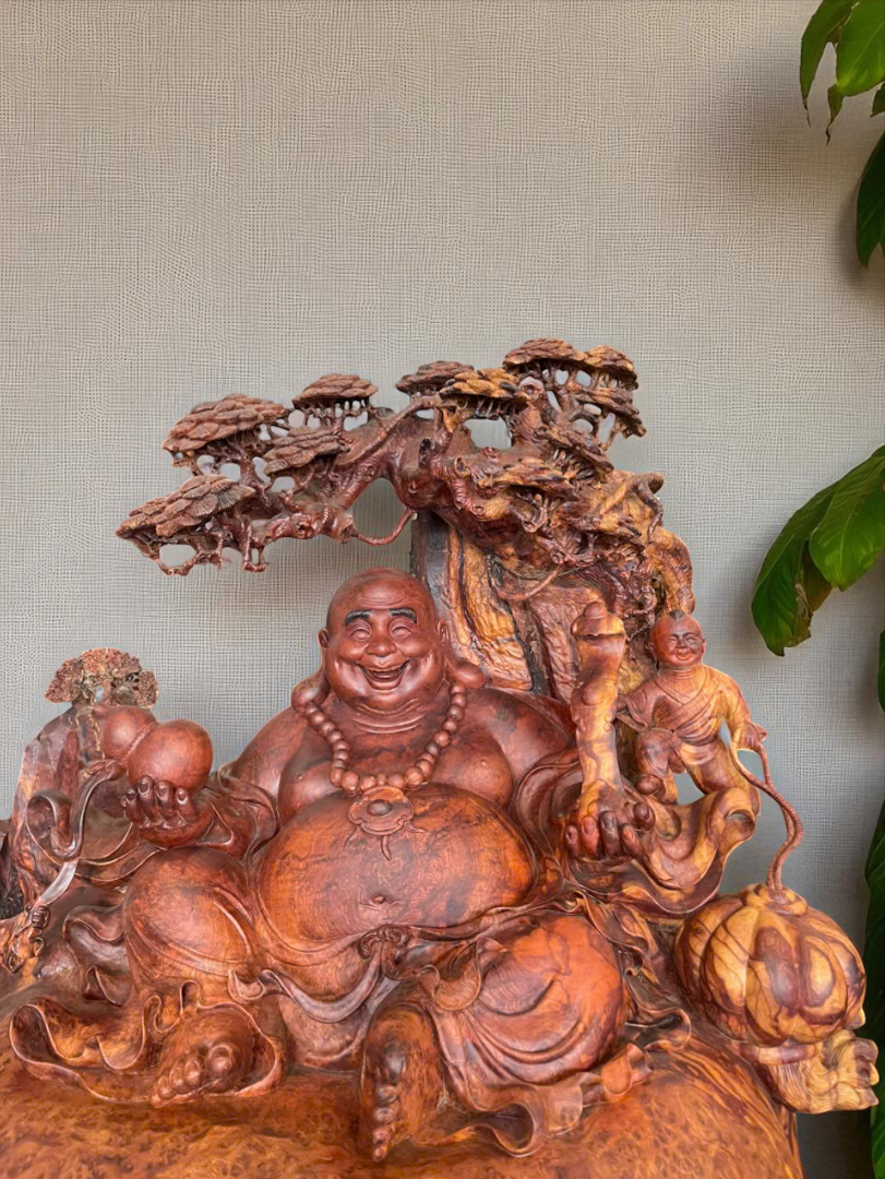 Sở hữu thần thái vui tươi, đầy phúc khí, tượng *Di Lặc* mang ý nghĩa chiêu tài, hóa giải xui xẻo, mang lại may mắn cho gia chủ. Đây không chỉ là một sản phẩm *nội thất gỗ cao cấp*, mà còn là vật phẩm phong thủy được nhiều người săn đón.